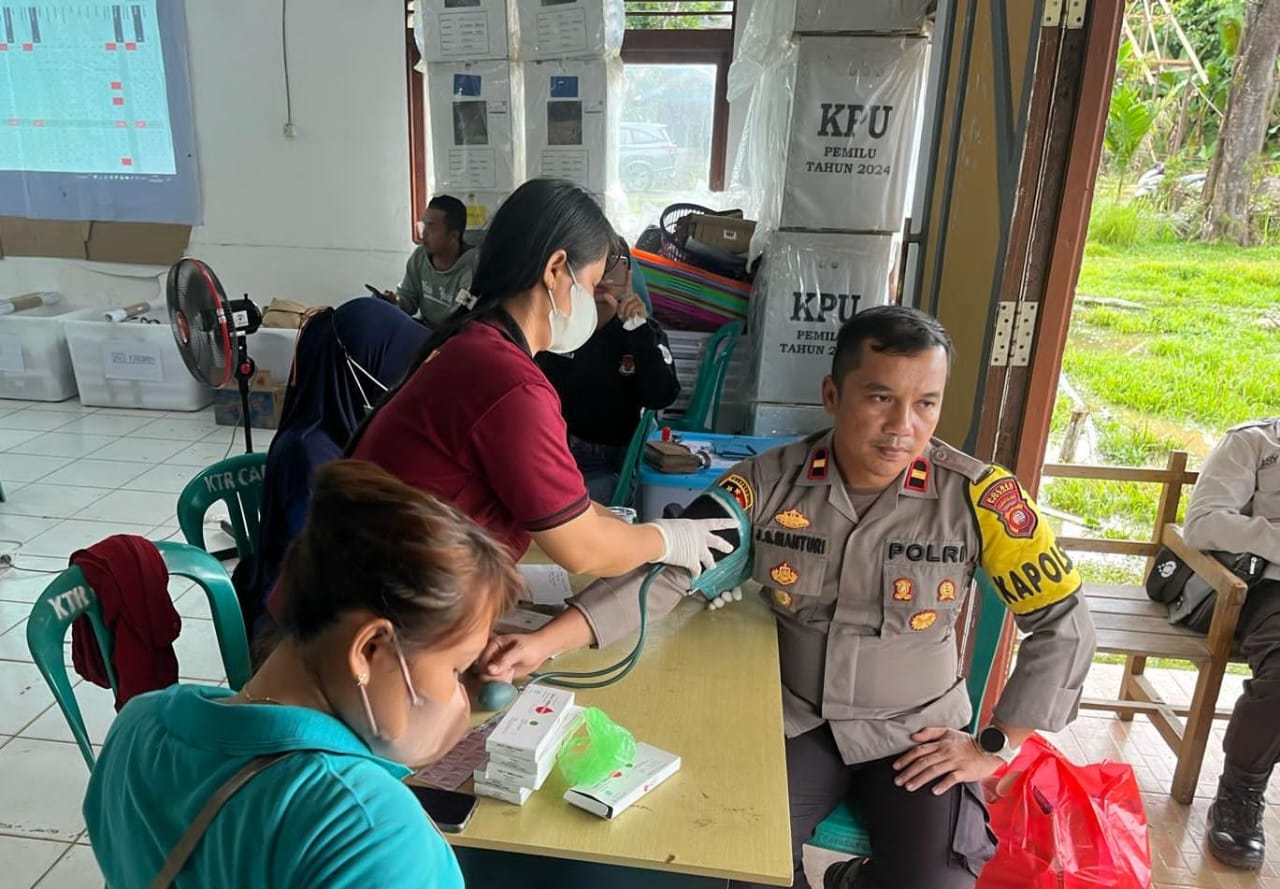 Kapolsek Sekadau Hulu IPDA Jessi Sinarta Sianturi, S.H, mengapresiasi layanan kesehatan yang diberikan oleh Tim Medis dari Puskesmas Rawak. Ini merupakan bentuk sinergitas dan dukungan dalam menjaga dan mengawal Pemilu.