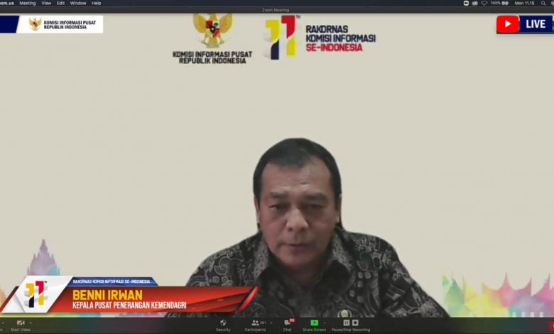 BeritaNasional.ID, Jakarta – Kepala Pusat Penerangan (Kapuspen) Kementerian Dalam Negeri (Kemendagri) Benni Irwan menyampaikan paparan terkait pentingnya optimalisasi penyediaan dan penyampaian informasi tentang Covid-19 secara transparan. Menurutnya, hal itu merupakan salah satu kunci sukses dalam menangani pandemi saat ini. Hal tersebut dikatakannya pada acara Silaturahmi Nasional Badan Publik & Rapat Koordinasi Nasional ke-11 Komisi Informasi se-Indonesia Tahun 2020 dengan tema “Adaptasi Kebiasaan Baru untuk Indonesia Sehat” secara virtual dari Ruang Rapat Pusat Penerangan, Senin, (26/10/2020).