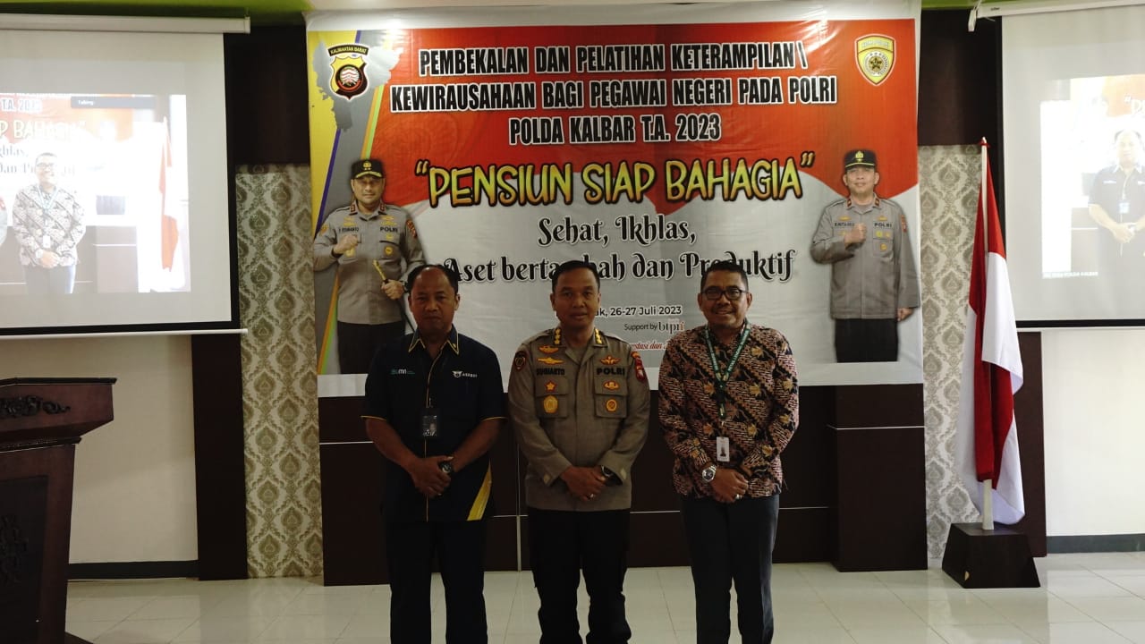 “Pelaksanaan Kegiatan Pembekalan dan Pelatihan keterampilan Menjelang pensiun ini sangat penting untuk kita ketahui bersama, karena kegiatan ini dilaksanakan untuk mempersiapkan Mindset, keberanian dan rasa percaya diri khususnya bagi personil Polda Kalbar untuk mengelola diri sendiri dalam menciptakan karya dan Nilai tambah kehidupan dan Ekonomi pada saat memasuki masa persiapan Pensiun,” ungkapnya.