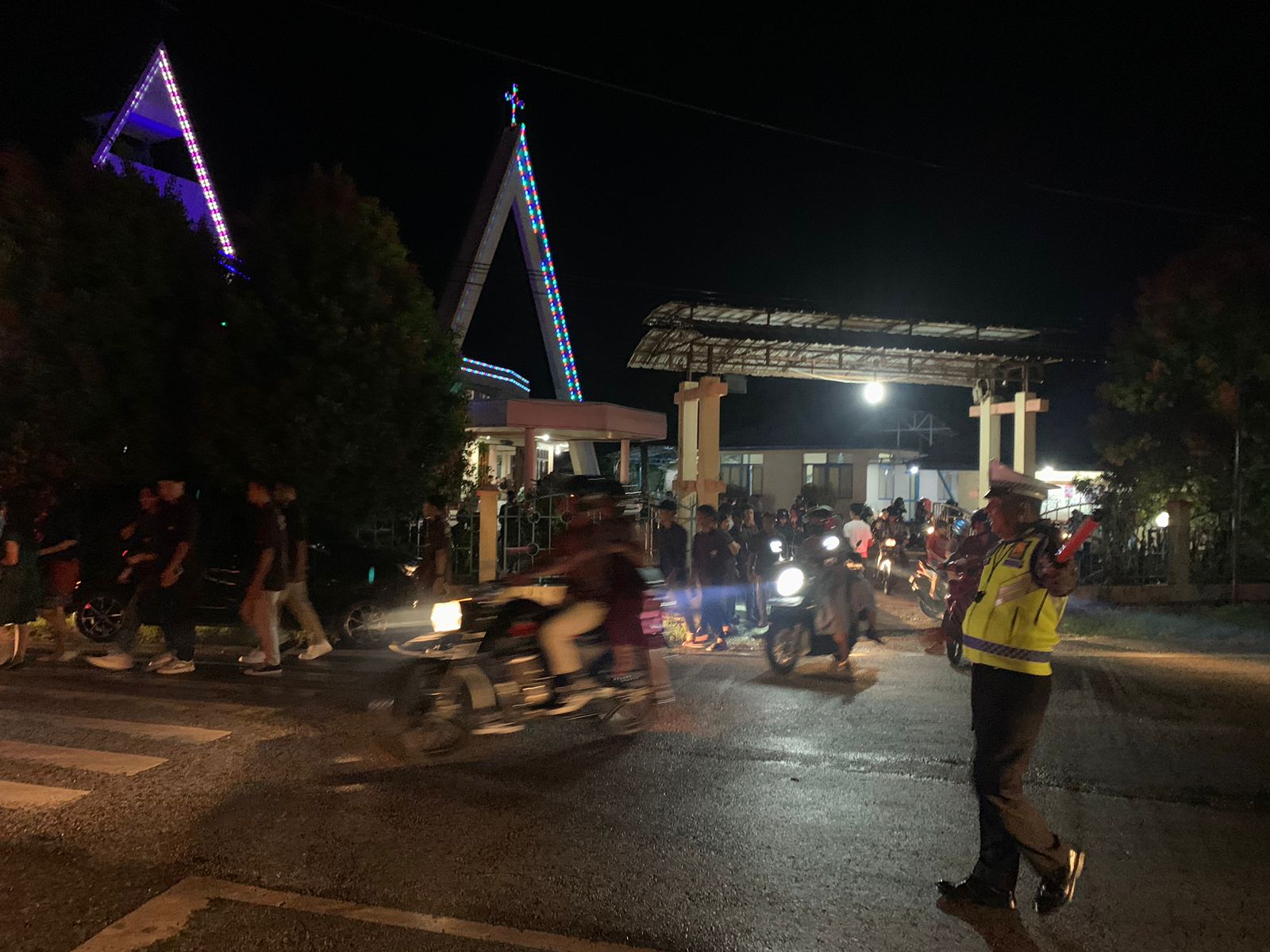 BeritaNasional.ID, SEKADAU KALBAR – Sore hari pukul 18.00 WIB di gereja St. Petrus dan Paulus Sekadau dipadati jemaat yang melaksanakan ibadah misa. Antisipasi kemacetan dan mencegah lakalantas, Polres Sekadau melalui regu siaga melakukan pengaturan lalulintas.