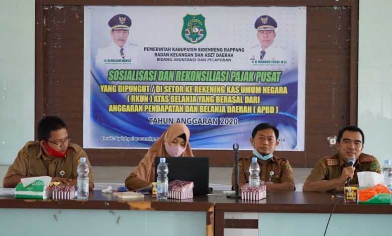 BeritaNasional.ID, Sidrap – Pemerintah Kabupaten Sidrap menggelar Sosialisasi dan Rekonsiliasi Data Penyetoran Pajak-pajak Pusat yang Dipungut/Disetor ke Rekening Kas Umum Negara (RKUN) atas belanja yang berasal dari Anggaran Pendapatan dan Belanja Daerah (APBD) Tahun aggaran 2020.
