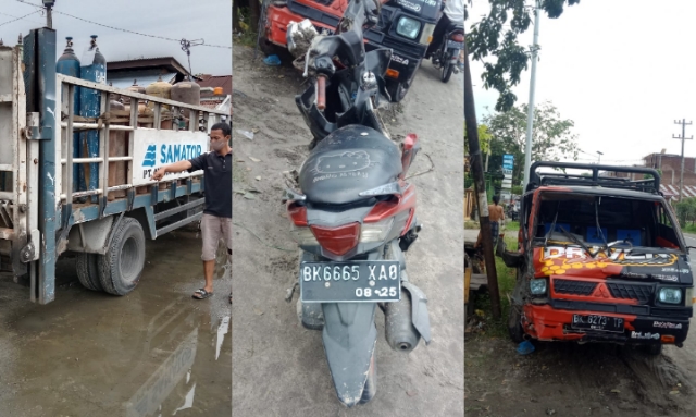 “Usai tabrakan itu, kemudian Mobil Mitsubishi Pick Up L300 tersebut menabrak Sepeda Motor Yamaha Mio Soul Gt BK 6665 XAQ yang sedang beriringan di belakang Mobil Truck Hino yang dimaksud, dan yang bersentuhan bagian depan sebelah kanan Mobil Pickup L 300 tersebut dengan bagian bak belakang sebelah kanan Mobil Truck Hino yang dimaksud,” katanya.