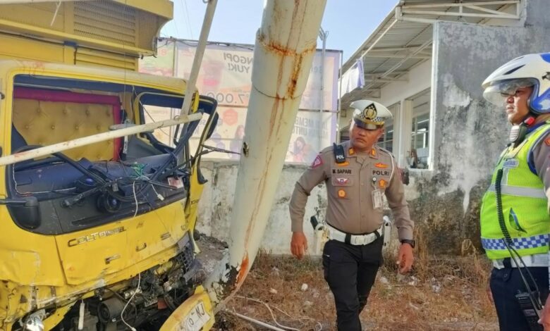 Sedangkan kendaraan Truck Box Nopol S-8016-NJ oleng kiri turun ke bahu jalan menabrak kendaraan sepeda motor Nopol N-6455-ON dikendarai Maimunah yang berjalan dari arah barat ke timur,” jelasnya