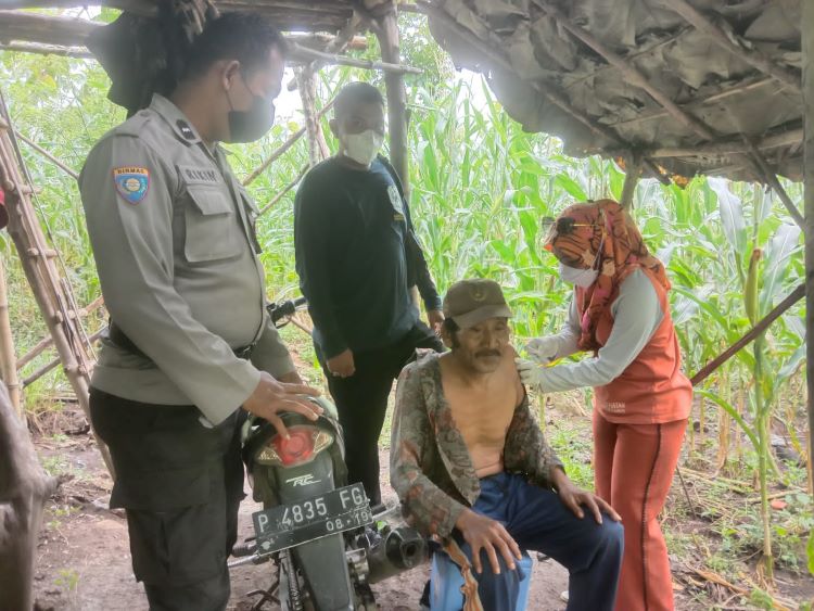 Kejar Target, Tim Vaksinator Bungatan Situbondo Lakukan Vaksin Hingga di Tengah Ladang