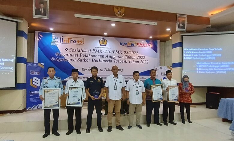 Pemberian penghargaan tersebut diserahkan langsung oleh Kepala KPPN Kabupaten Bondowoso, Alexander Budi Dayantoro pada kegiatan Sosialisasi Peraturan Menteri Keuangan (PMK) Terbaru yaitu PMK No. 210 Tahun 2022, serta Evaluasi Anggaran Satker Tahun 2022 yang diadakan di KPPN Bondowoso pada Selasa (14/02).