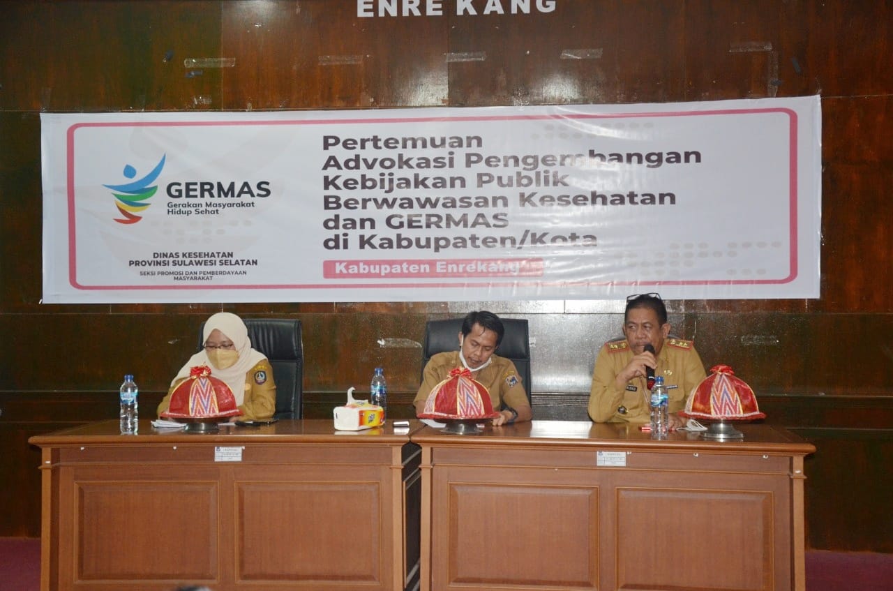 BeritaNasional.ID, SIDRAP — Isu kesehatan dimasa pandemi saat ini menjadi hal serius yang diperhatikan oleh Pemerintah, oleh karena itu Dinkes Kabupaten Enrekang bersama Dinas Kesehatan Provinsi Sulsel mengadakan pertemuan advokasi pengembangan kebijakan publik berwawasan Kesehatan dan GERMAS di Enrekang