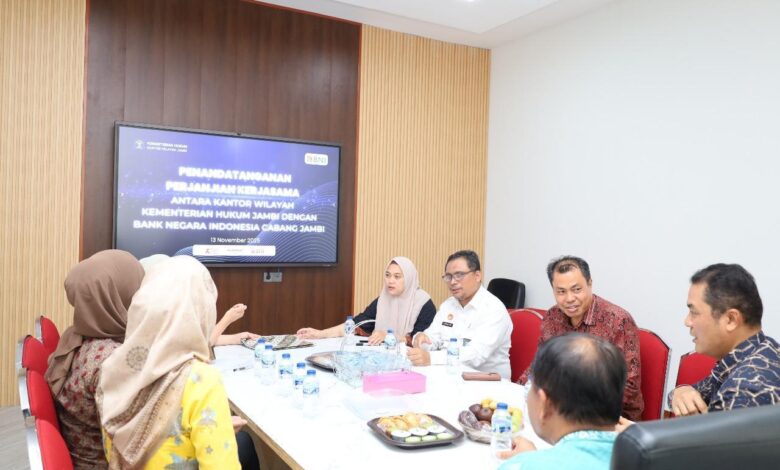BeritaNasional.ID, JAMBI — Kantor Wilayah Kementerian Hukum (Kemenkum) Jambi menjalin kerja sama strategis dengan PT Bank Negara Indonesia (Persero) Tbk (BNI) melalui penandatanganan Perjanjian Kerja Sama (PKS) yang digelar di Ruang Rapat Kanwil Kemenkum Jambi, Kamis (13/11/2025).