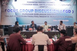 BeeitaNasional.id.Sulbar — Pemprov Sulbar melalui Dinas Penanaman Modal dan Pelayanan Terpadu Satu Pintu (DPM-PTSP) menggelar Focus Group Discussion (FGD) Rumusan Kebijakan Daerah Dalam Pemberian Fasilitas/Insentif Penanaman Modal, di Maleo Waterpark Mamuju, Selasa 1 November 2022.