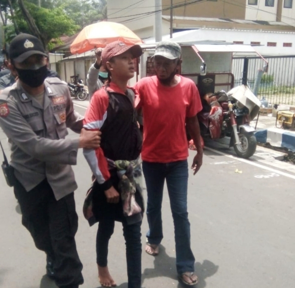 Ditengah aksi demo, pihak aparat sempat mengamankan pemuda belia yang kedapatan membawa batu dan botol aqua berisi bensin. Remaja tersebut segera diamankan untuk menjaga situasi aksi tetap kondusif.