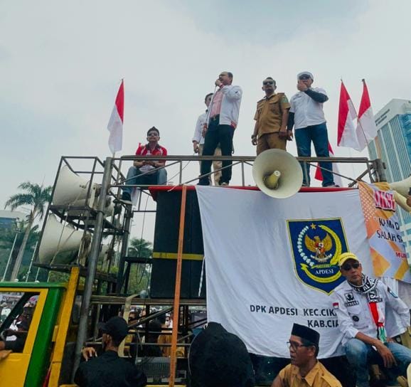Terakhir dalam orasinya Fachrul Razi kembali menegaskan bahwasanya Desa tidak menuntuk dana APBN dikembalikan ke desa namun minimal 10% Dana APBN kembali ke desa,”