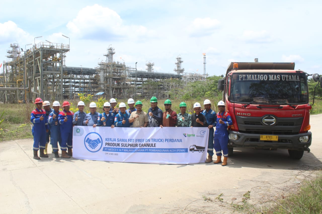 BeritaNasional.ID, ACEH TIMUR — PT Medco E & P Malaka (Medco E&P) bekerja sama dengan PT Pembangunan Aceh (PEMA) untuk memanfaatkan sulfur granul di Blok A melalui penjualan FOT (Free on Truck). Kerja sama ini menunjukkan kontribusi aktif Perusahaan dalam meningkatkan Pendapatan Asli Daerah Aceh.