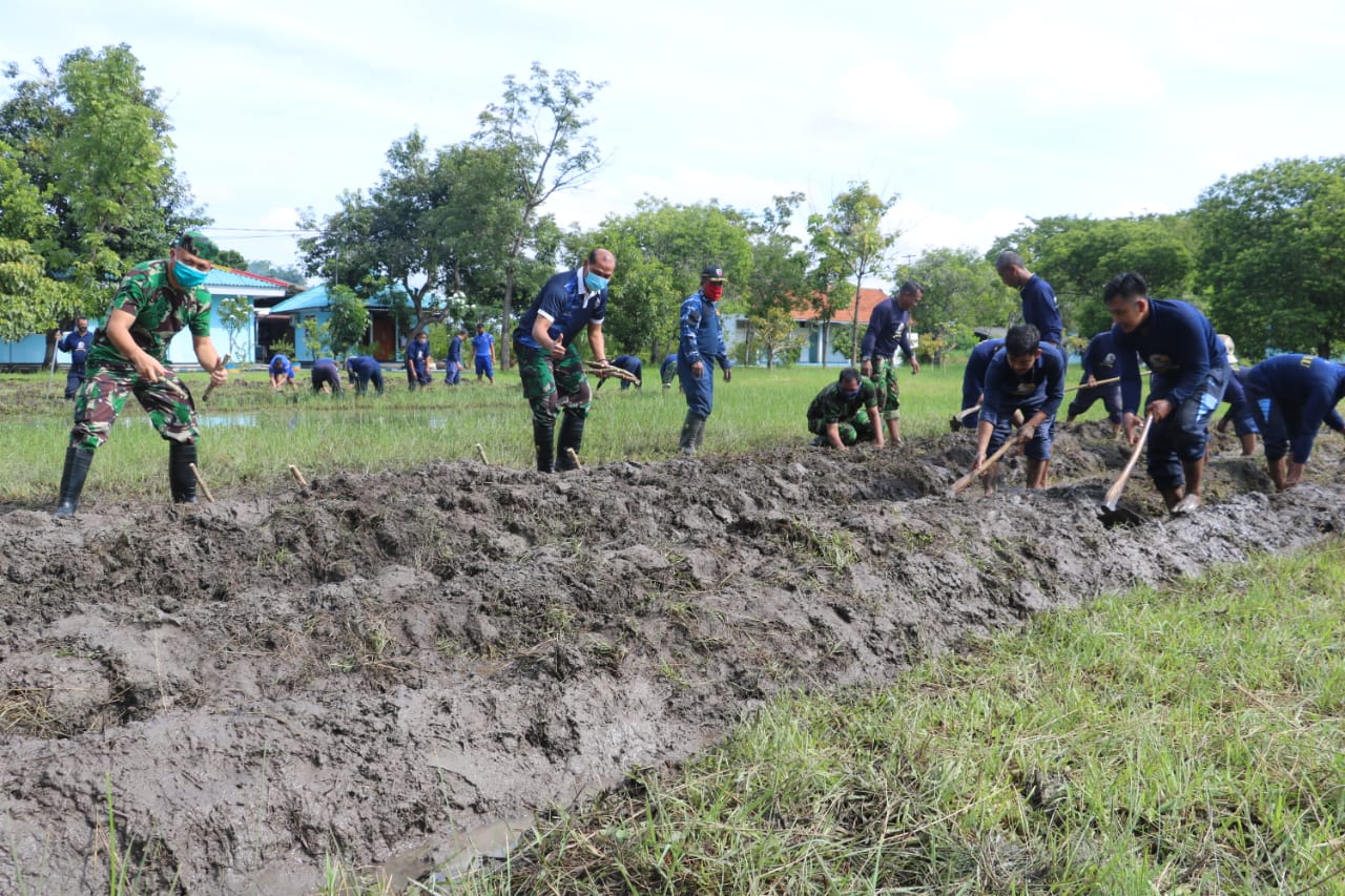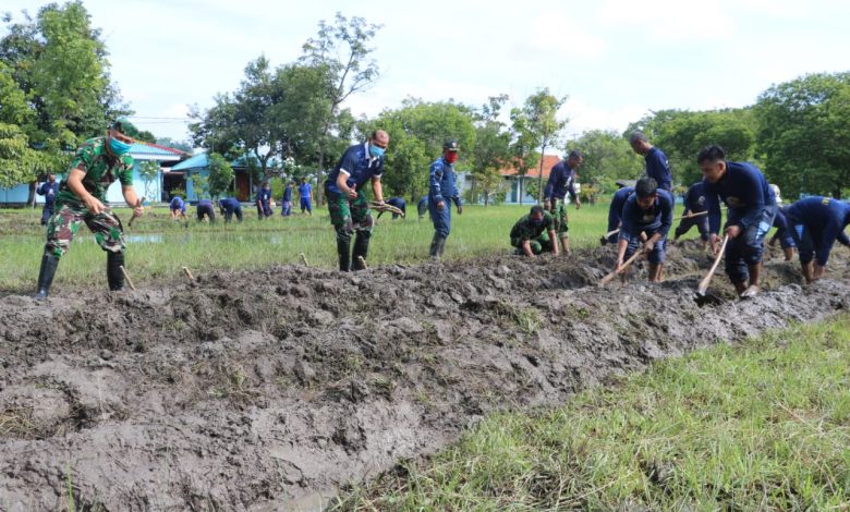 BeritaNasional.ID, Surabaya – Komandan Lanud Muljono Kolonel Pnb M. Somin sedang menanam singkong yang bertempat di lahan tidur Mako lama Lanud Muljono Surabaya, Rabu (15/4).