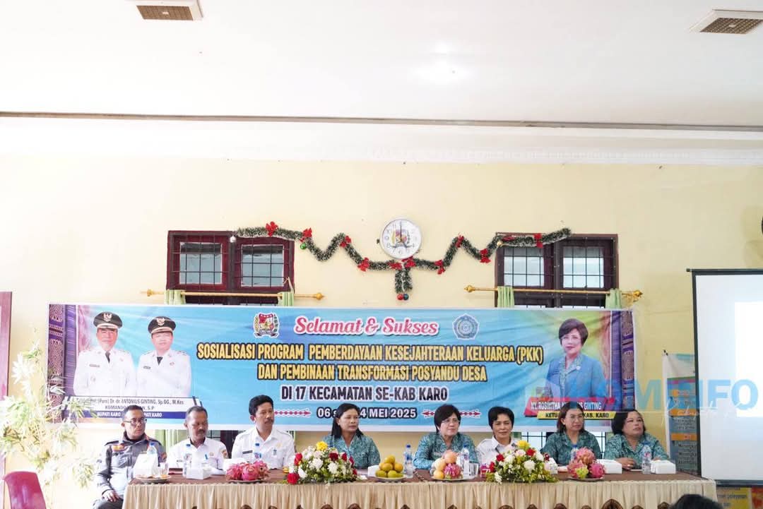 BeritaNasional.ID KABANJAHE, SUMUT – Ketua Tim Penggerak PKK Kabupaten Karo, Roswitha Antonius Ginting, menghadiri kegiatan Sosialisasi Program Pemberdayaan Kesejahteraan Keluarga (PKK) dan Pembinaan Transformasi Posyandu Desa yang dilaksanakan di Aula Kantor Camat Laubaleng. Kegiatan ini diikuti oleh para kader PKK dari Kecamatan Laubaleng dan Kecamatan Mardinding, Rabu (14/5/2025)
