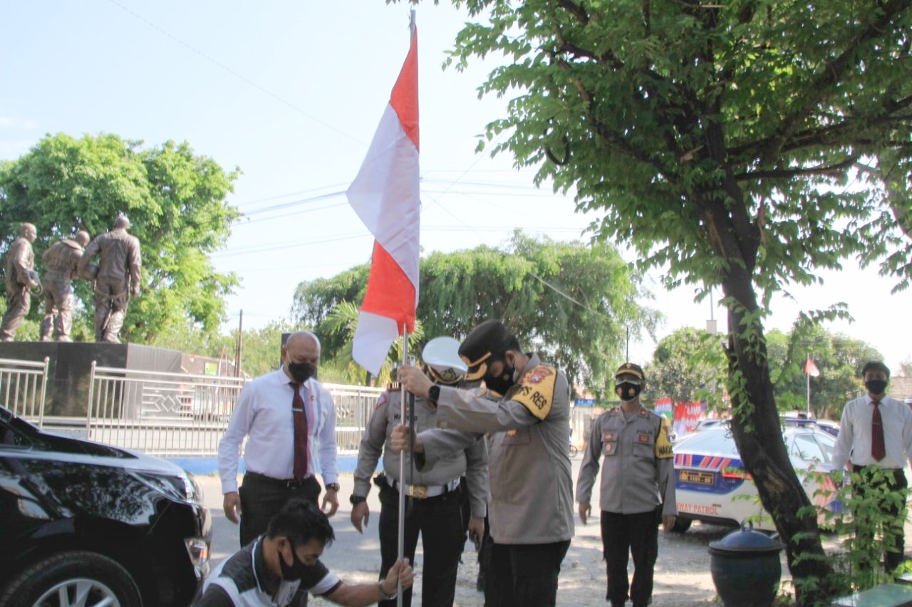 BeritaNasional.ID, Magetan – Sebagai simbol perjuangan melawan pandemi Covid-19 sekaligus menyambut HUT ke-76 RI, Polres Magetan mengajak pedagang kibarkan bendera Merah Putih.