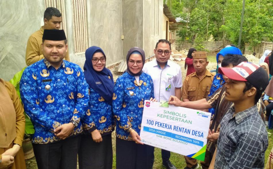 Hal ini ditandai dengan diserahkannya kartu kepesertaan BPJS Ketenagakerjaan kepada 100 pekerja rentan tersebut oleh Wakil Bupati Bone Bolango, Merlan S. Uloli, di halaman rumah Kepala Desa Langge, Senin (19/6).