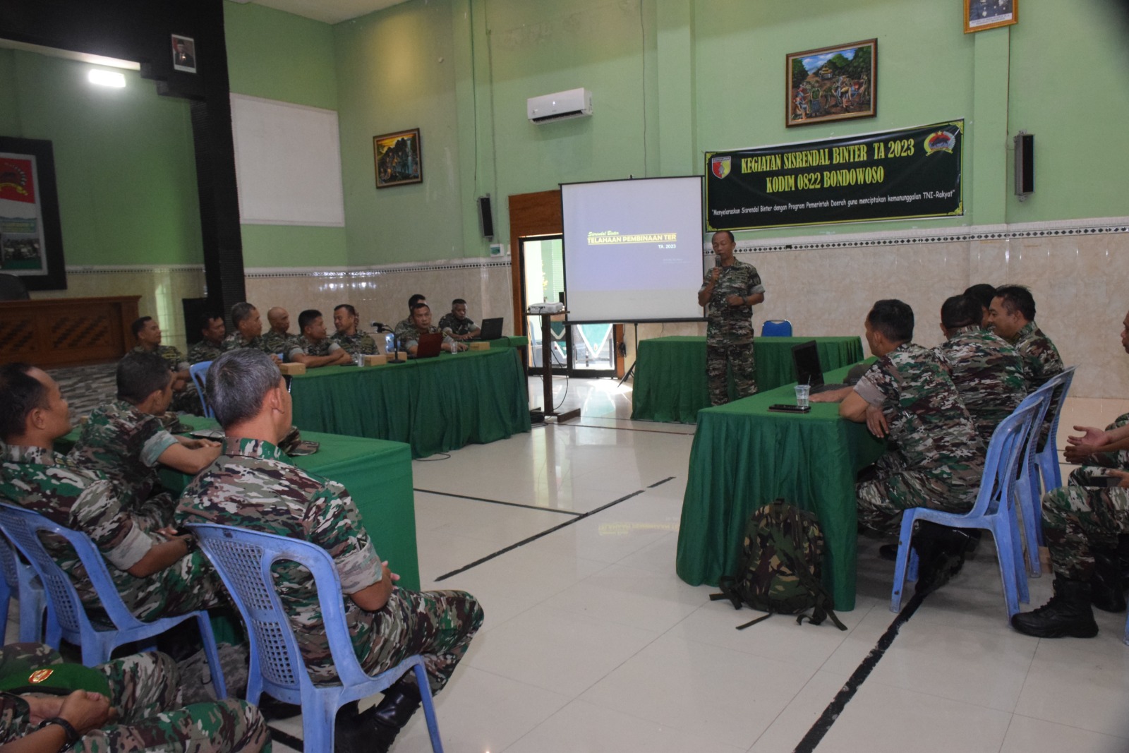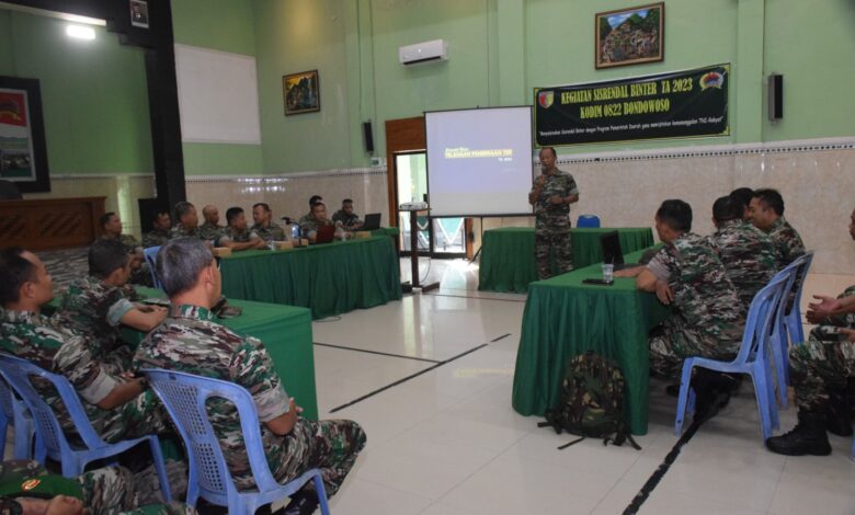 Sisrendal Binter tahun anggaran 2023 beetema ‘Menyelaraskan Sisrendal Binter Dengan Program Pemerintah Daerah Guna Menciptakan Kemanunggalan TNI-Rakyat’, diselenggarakan di aula Jenderal Sudirman Makodim, Jum’at (5/5).