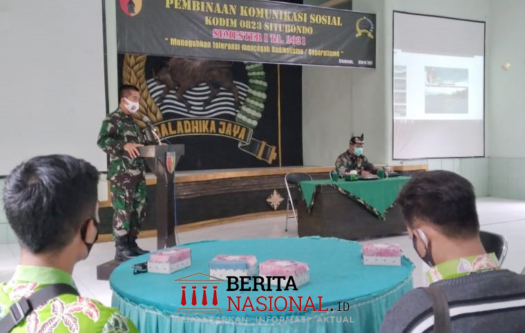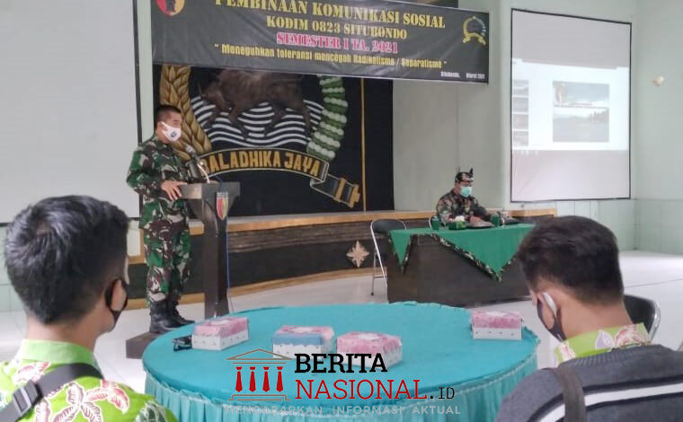 BeritaNasional.ID – SITUBONDO – Kodim 0823 Situbondo kembali menggelar pembinaan wawasan kebangsaan semester I Tahun 2021. Kegiatan yang berlangsung di Aula Kodim 0823 Situbondo ini dibuka oleh Komandan Kodim yang di wakilkan Pasi Teritorial Kapten Inf Hadi Sutjipto, Kamis (8/4/2021).