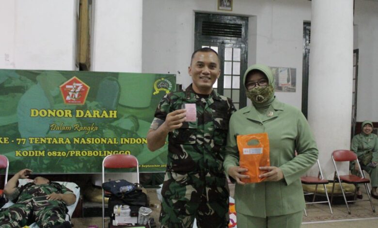 Kolaborasi Donor Darah HUT TNI ke 77 di Kodim 0820 Probolinggo