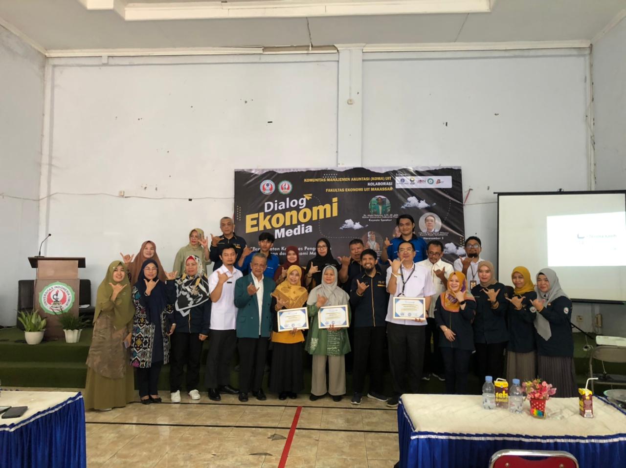 Kegiatan Dialog Ekonomi Media dibuka oleh Rektor UIT (Dr. Abdul Rahman, S.Pt.,SE.,MM) Keynote Speaker (Wali Kota Makassar yang diwakili oleh Plt. Diskominfo Kota Makassar Ismawati Nur, ST.,M.Sc.,Phd.), Tema “Peran Media Dalam Mewujudkan Akuntabilitas Pengelolaan Keuangan”