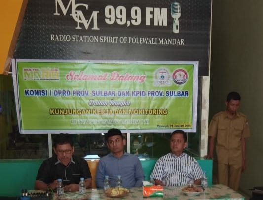 Polman.Sulbar .Beritanasional.I’d –Komisi I DPRD Propinsi Sulawesi barat dan Komisi Penyiaran Indonesia Daerah Sulbar melakukan kunjungan kerja, untuk memonitoring dan mengevaluasi lembaga penyiaran radio dan televise. Bertemoat studio Mario Fm Pekkabata Polewal kab Oilman Prov Sulvar. Selasa, 21 Januari 2020