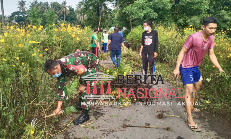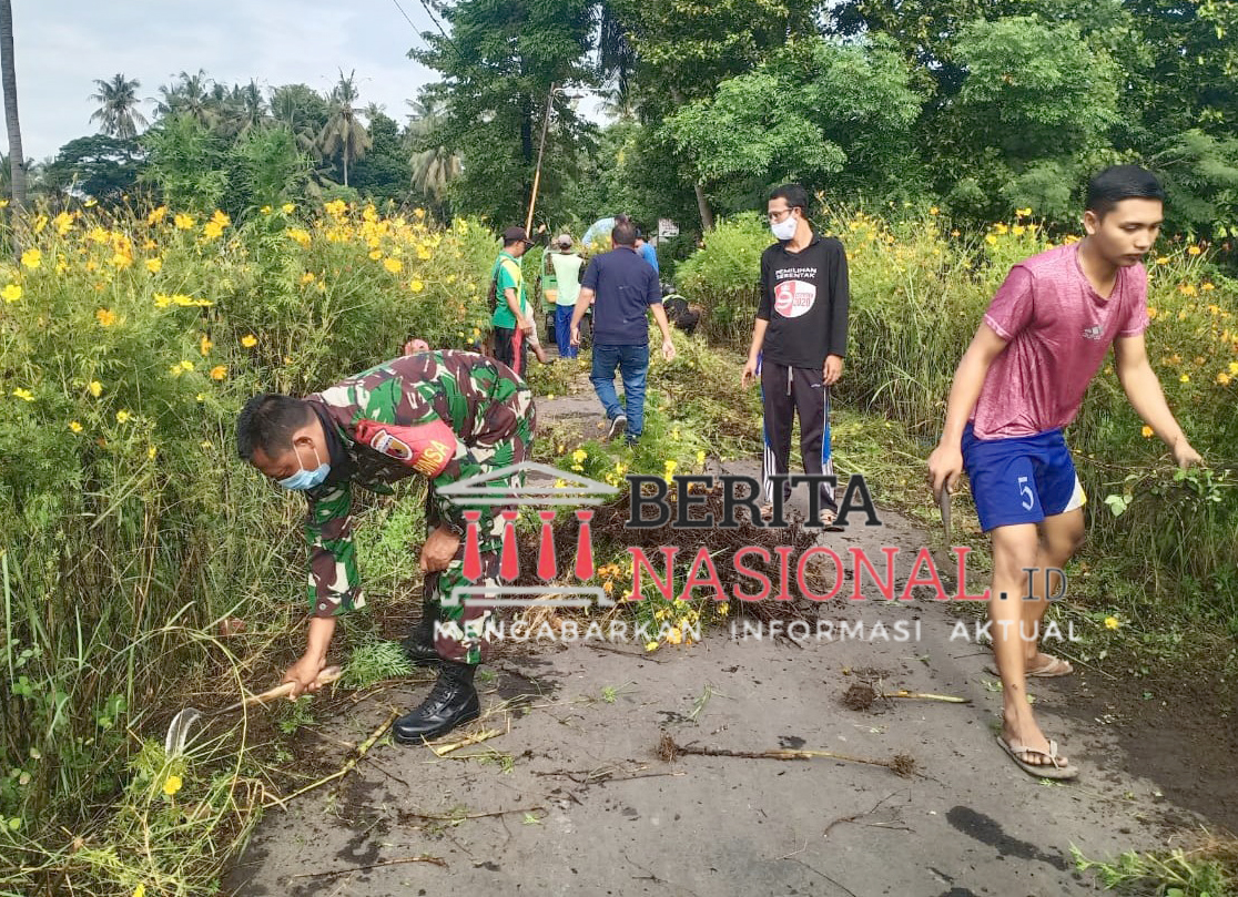 BeritaNasional.ID – SITUBONDO – Untuk menciptkan lingkungan yang bersih dan sehat, Serda Lamidi Babinsa Desa Kesambirampak Koramil Kapongan bersama masyarakat Dusun Nyiur Cangka RT.011/RW.002 Desa Kesambirampak Kecamatan Kapongan, Kabupaten Situbondo, membersihkan bahu jalan Taman Desa, Jumat (19/2/2021).