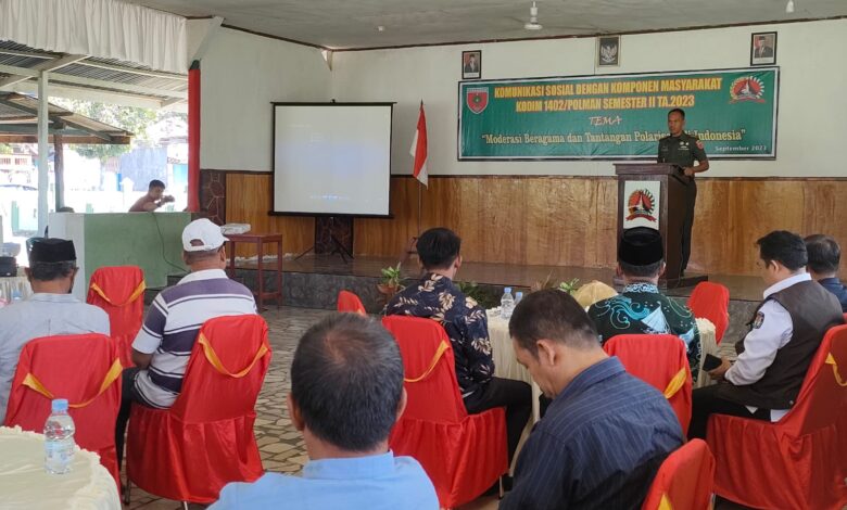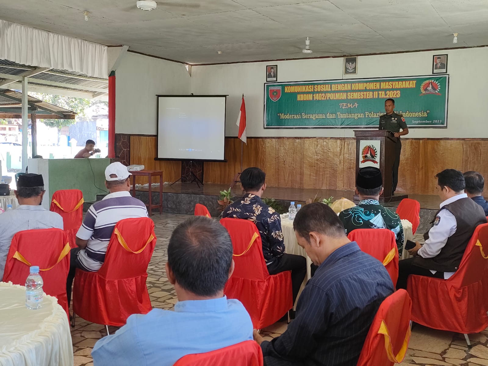 BeritaNasional.ID.POLMAN SULBAR–– Kodim 1402/Polman menggelar komunikasi sosial dengan komponen masyarakat Polewali Mandar yang mengangkat tema “Moderasi Beragama Dan Tantangan Polarisasi di Indonesia” berlangsung di Baruga Mammesa Kodim 1402/Polman, Kabupaten Polewali Mandar, Sulawesi Barat. Kamis (14/9/2023).
