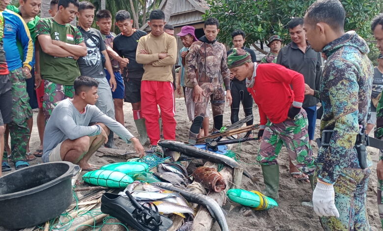 Pantauan di lokasi, sejumlah ikan segar hasil tangkapan penyelam dan pemanah kemudian diserahkan kepada personil Satgas dan warga yang ada di pesisir pantai Tola. Selanjutnya ada yang menyiapkan pembakaran dan ada yang membelah-belah ikan untuk di bakar.