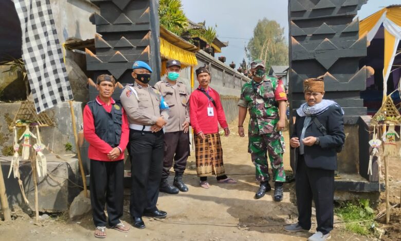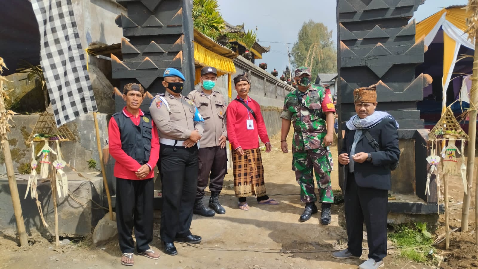 Koramil 0820/11 Sumber mengawal jalannya kegiatan keagamaan umat Hindu berupa piodalan di Pure Giri Kencana Desa Pandansari Kecamatan Sumber Kabupaten Probolinggo.
