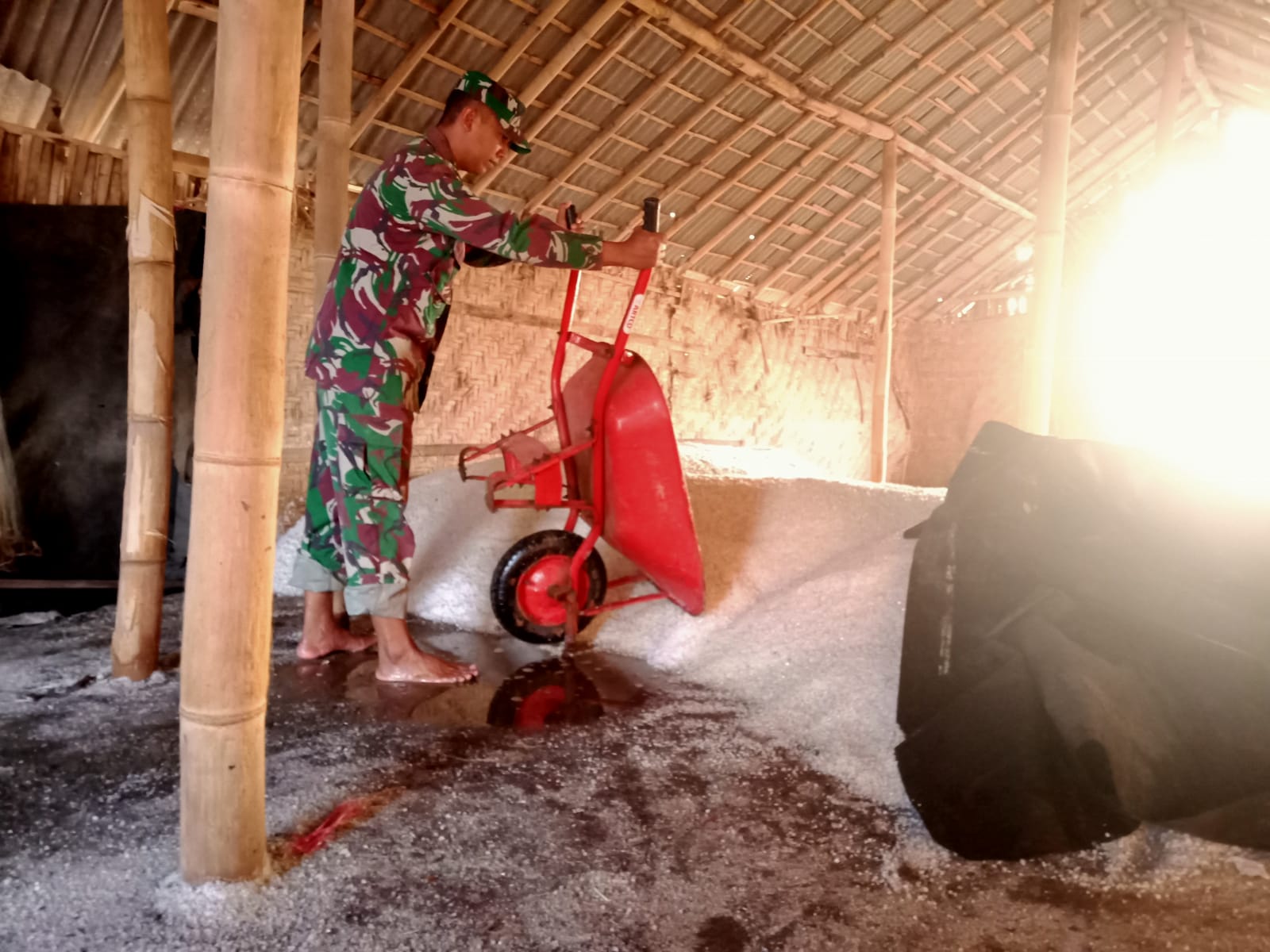 Koramil 0820/15 Pajarakan, Jalin Keakraban Bantu Petani Panen Garam