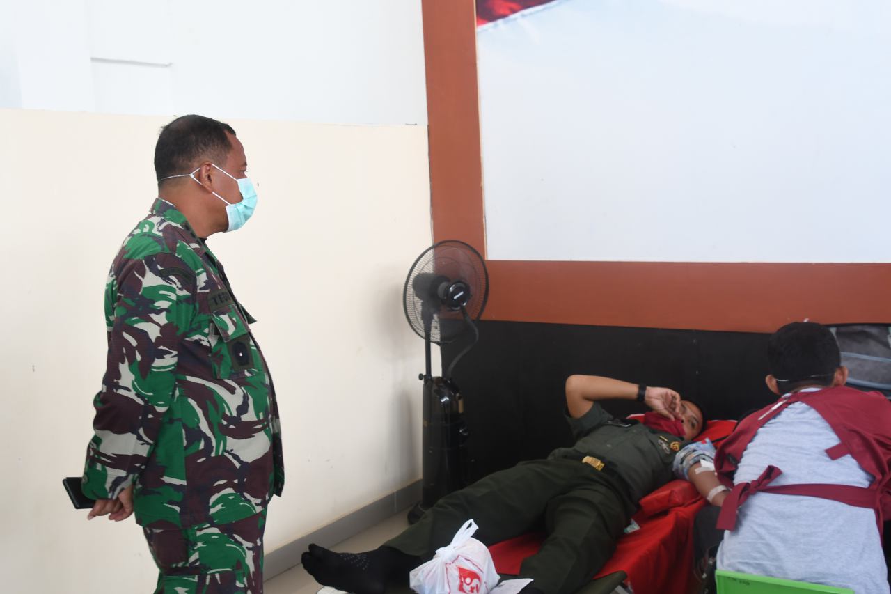 Sulbar.Beriranasional.id –Danrem 142/Tatag Kolonel Inf. Eventius Teddy Danarto melihat secara langsung pelaksanaan donor darah yang berlangsung di Aula Andi Depu Korem 142/Tatag Jalan Abd. Malik Pattana Endeng Mamuju Prov. Sulbar (8/04)