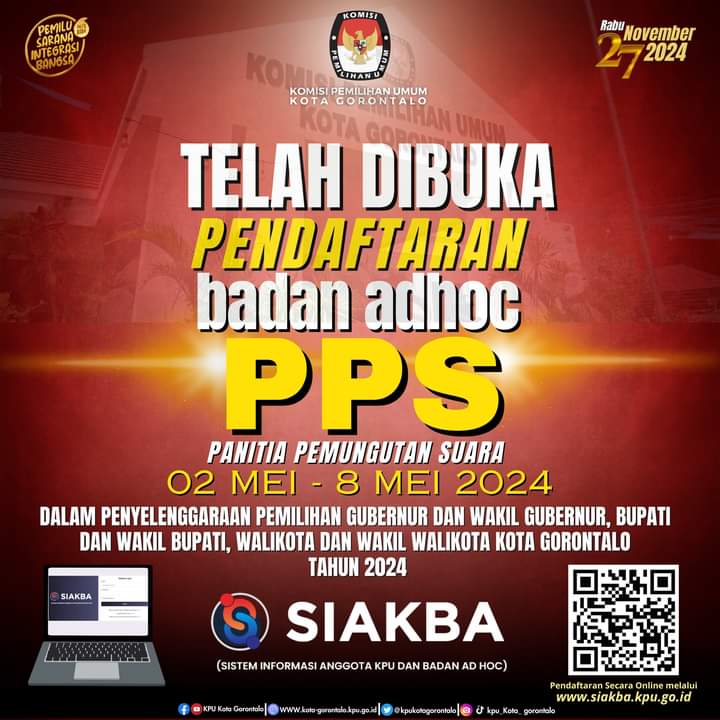 BeritaNasional.ID, GORONTALO — Seleksi Panitia Pemungutan Suara (PPS) pada Pemilihan Gubernur dan Wakil Gubernur, Bupati dan Wakil Bupati, dan Walikota dan Wakil Walikota Gorontalo Tahun 2024 telah resmi dibuka.