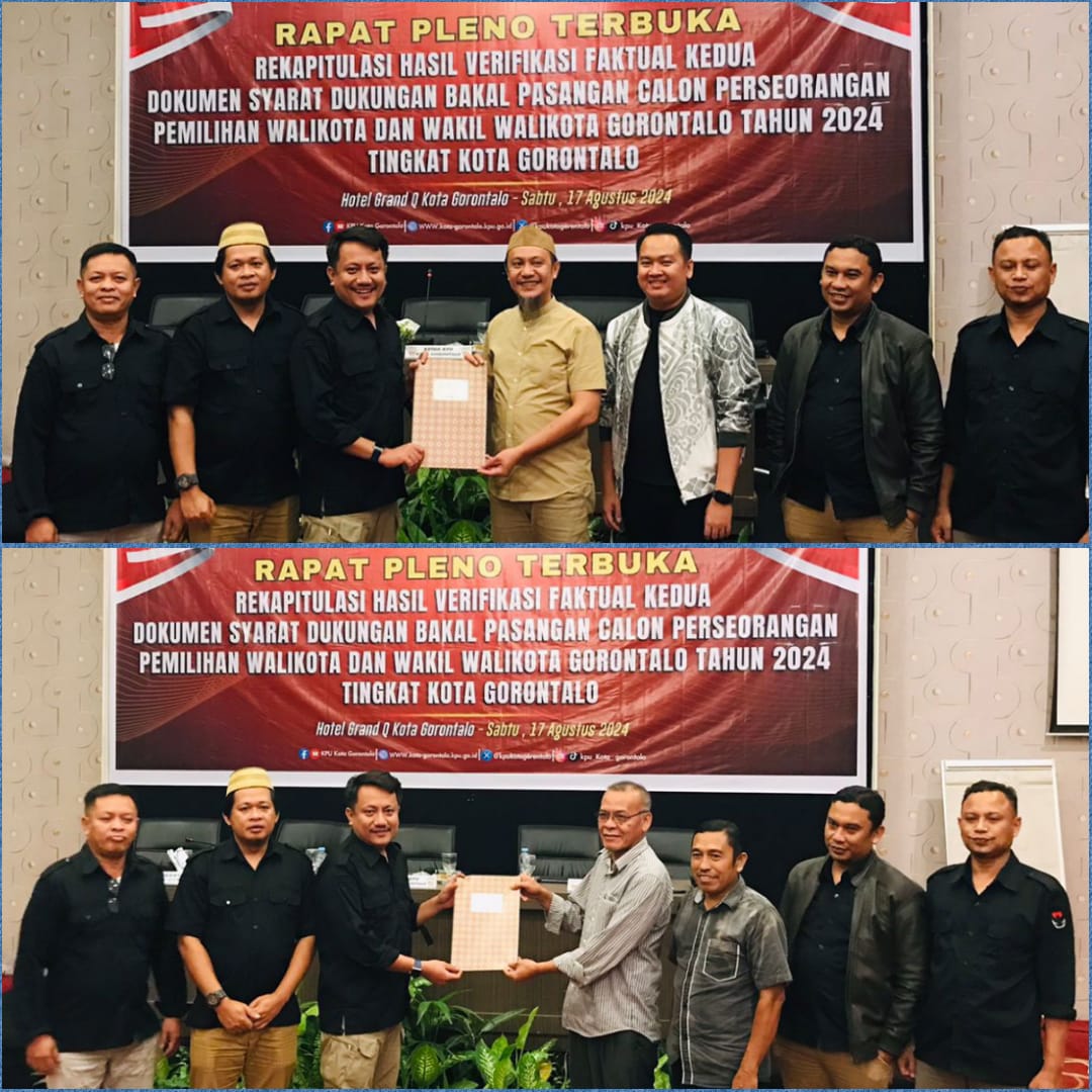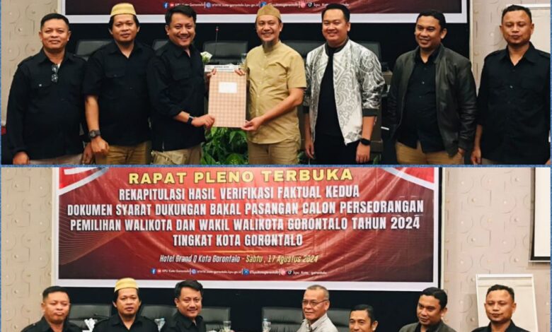 Hal tersebut terungkap saat Rapat Pleno Terbuka Rekapitulasi Hasil Verifikasi Faktual Kedua Dokumen Syarat Dukungan Bakal Pasangan Calon Perseorangan Pemilihan Walikota dan Wakil Walikota Gorontalo Tahun 2024 yang digelar di Hotel Grand Q Kota Gorontalo, Sabtu (17/8/2024).