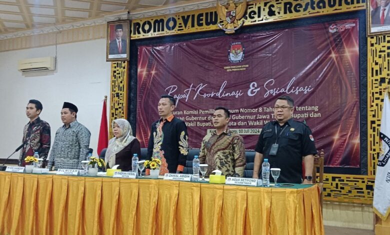 BeritaNaaional.ID, PROBOLINGGO JATIM- Komisi Pemilihan Umum (KPU) Kota Probolinggo menggelar rapat koordinasi dan sosialisasi Peraturan Komisi Pemilihan Umum Nomor 8 Tahun 2024 tentang Pencalonan Gubernur dan Wakil Gubernur, Bupati dan Wakil Bupati, serta Walikota dan Wakil Walikota di Hotel Bromo View, Jalan Raya Bromo, Kecamatan Kedemangan, Kota Probolinggo, Jawa Timur.