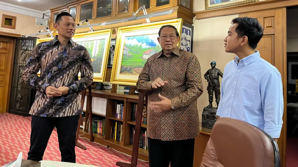 Gibran dan AHY terlihat sempat berbincang secara empat mata di kawasan Pendopo. Setelah itu, barulah keduanya menemui SBY di kediaman utama.
