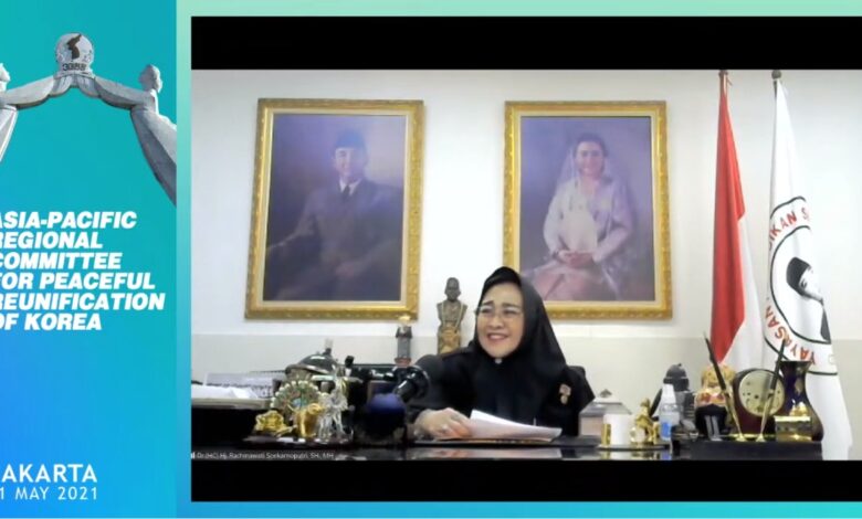 Demikian antara lain disampaikan putri Bung Karno, Rachmawati Soekarnoputri, saat berbicara dalam Konferensi Komite Asia-Pasifik untuk Reunifikasi Damai Korea (APRCPRK) yang diselenggarakan secara virtual, Senin (31/5).