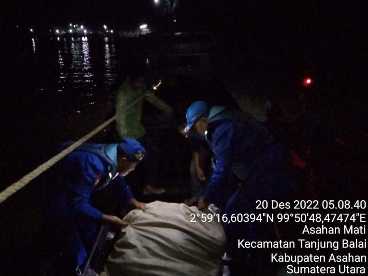 Kapolres Tanjungbalai AKBP Ahmad Yusuf Afandi SIK. MM, melalui Kasatpolair Polres Tanjungbalai AKP Togap Sianturi mengatakan “Pada hari Selasa 20/12/22, pukul 05.08 Wib Kapal Patroli II- 1014 Sat Polairud Polres Tanjung Balai diawaki team regu I Aiptu Sarianto dan Bripka Joko.S melakukan pengejaran satu unit kapal yang datang dari laut tujuan Tanjung Balai diposisi/koordinat :N = 2° 59′ 16,53673” E = 99° 51′ 48,92525“.