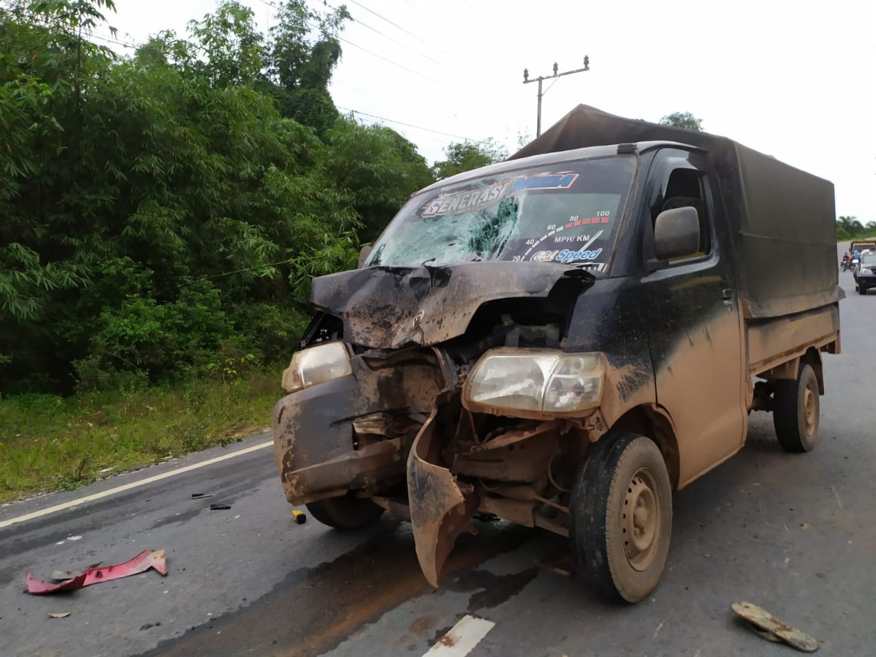 Sesampainya di lokasi kejadian, sepeda motor hampir menabrak kendaraan mobil jenis Avanza kemudian oleng ke kanan. Saat bersamaan dari arah berlawanan datang mobil Daihatsu Grand Max yang dikendarai Tukimim.