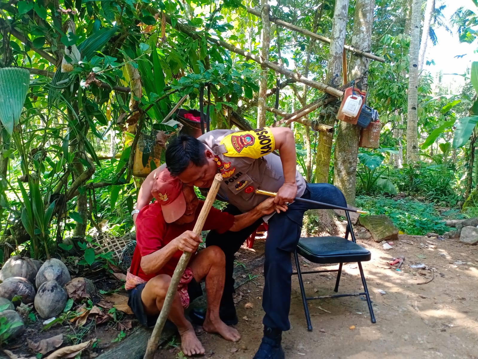 ” Syukur sekali ada Pak Polisi yang mau bangun rumahku kasi bantuan , ucapnya terbata Haru sambil menahan beban tubuhnya pada tongkatnya.