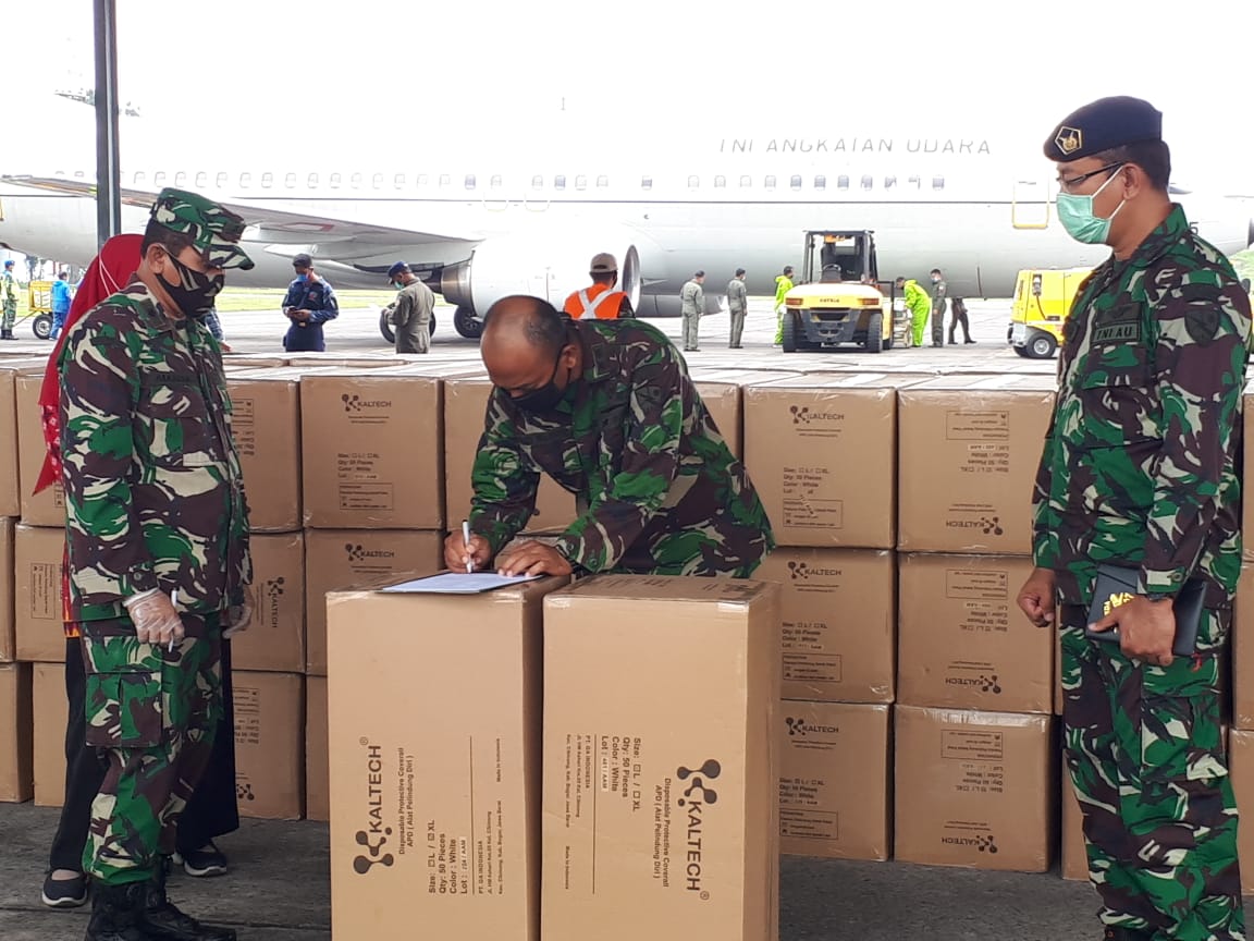Ribuan alat kesehatan tersebut diangkut dengan menggunakan pesawat Boeing 737 TNI AU A-7305 yang mendarat di Lanud Soewondo tepat jam 12:13 WIB, setelah sebelumnya pesawat ini berangkat dari Halim Perdanakusuma menuju Lanud Roesmin Nurjadin Pekan Baru dan dilanjutkan ke Lanud Sultan Iskandar Muda dan selanjutnya menuju Lanud Soewondo Medan dan kembali lagi menuju Halim Perdanakusuma, Kamis (14/5/2020).