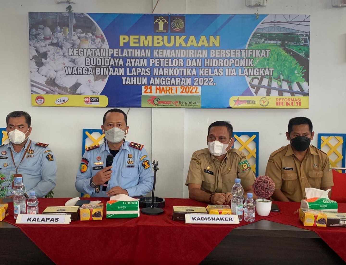 Kepala Lapas Narkotika Kelas IIA Langkat, Alaxander Lisman Putra mengatakan, kegiatan pelatihan kemandirian ini terbagi 2 kelompok, yaitu budidaya ayam bertelur dan hidroponik. Program pelatihan ini dilaksanakan selama 20 hari dengan diisi pemateri, teori, dan praktek lapangan oleh instruktur.