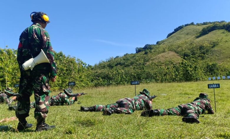 Suara letusan senjata ratusan personel Kodim 1402/Polman terdengar begitu nyaring di lereng bukit sila-sila, mereka tidak sedang kontak tembak dengan musuh, namun sedang melakukan latihan menembak senjata ringan.