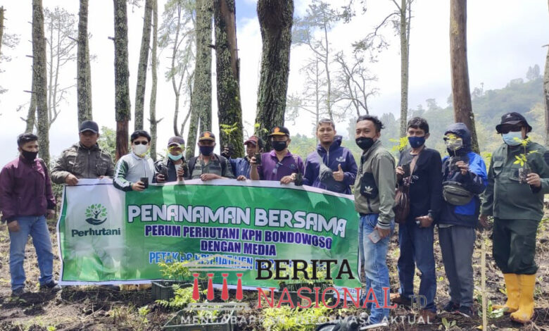 Lestarikan Lingkungan, Awak Media dan Perum Perhutani KPH Bondowoso Tanam 8000 Bibit Pohon