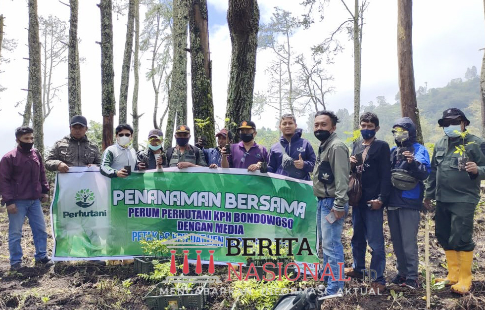 BONDOWOSO – BeritaNasional.ID – Sejumlah wartawan media cetak, online dan telivisi melaksanakan penanaman pohon bersama dengan Perum Perhutani KPH Bondowoso di petak 98, kawasan produksi RPH dataran Ijen BKPH Sukosari, KPH Bondowoso, Dusun Melaten, Desa Jampit, Kecamatan Ijen, Kabupaten Bondowoso, Kamis (25/2/2021).