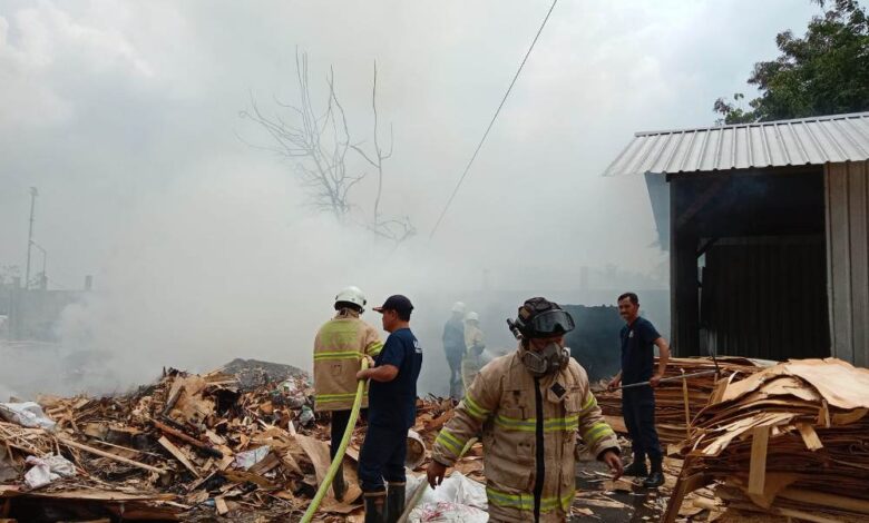 Limbah Triplek Terbakar, 3 Damkar Diterjunkan