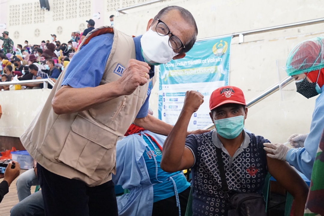 Vaksinasi Covid-19 sangat penting dilakukan, sebagai bentuk lain, selain menerapkan protokol kesehatan dengan ketat. Dengan vaksinasi kita dapat mencegah penularan Covid-19 ke diri kita maupun orang lain.