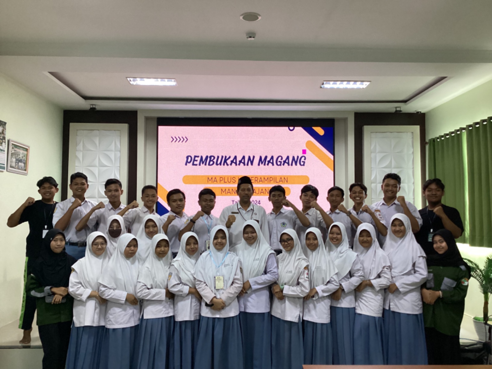 “MAN Lumajang mempunyai brending MA plus ketrampilan jadi muncul 2 SK yaitu Lembaga MAN Lumajang Dan juga MA Plus Ketrampilan itu ada SKnya tersendiri, saat ini progam madang ini waktunya 1 bulan, Jumlah siswa yang magang 28 Siswa dan tersebar di 12 institusi meliputi 10 di dunia pendidikan baik SD maupun MI dan yang 2 bertempat di dunia usaha”, lanjut Edy Nanang Sofyan Hadi.