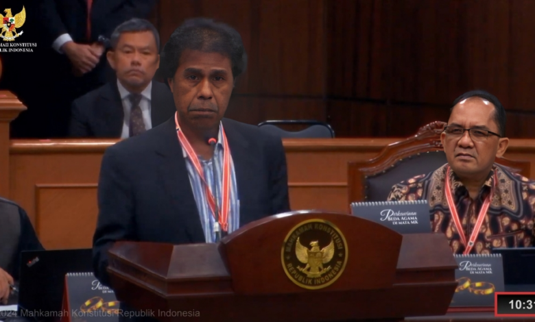 BeritaNasional.ID, Jakarta — Sidang Sengketa Pilpres 2024 di Mahkamah Konstitusi (MK) terus berlanjut, kali ini giliran pihak terakit yakni Tim Prabowo-Gibran menghadirkan saksi dan ahli untuk memberikan keterangan kepada Hakim MK. Sebanyak 14 orang yang bertindak sebagai saksi dan ahli yang terdiri dari 8 orang ahli dan 6 orang saksi telah hadir di ruang sidang tersebut, salah satunya adalah Margarito Kamis seorang Pakar Hukum Tata Negara, Kamis (4/4) pagi.