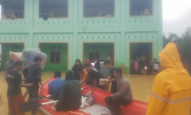 BeritaNasional ID, ACEH TIMUR — Ditengah terjangan banjir besar di Kecamatan Indra Makmu, Kabupaten Aceh Timur, perusahaan Migas PT Medco E&P Malaka salurkan bantuan sembako untuk ratusan satri Dayah yang terjebak banjir mengunakan perahu karet.