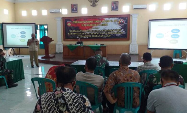 BeritaNasional.ID, Brebes – Sebagai upaya dalam edukasi tentang kebencanaan, Kodim 0713 Brebes menggelar kegiatan pembinaan masyarakat tanggap bencana di Aula Jenderal Soedirman Makodim Brebes. Senin (23/8/2021).