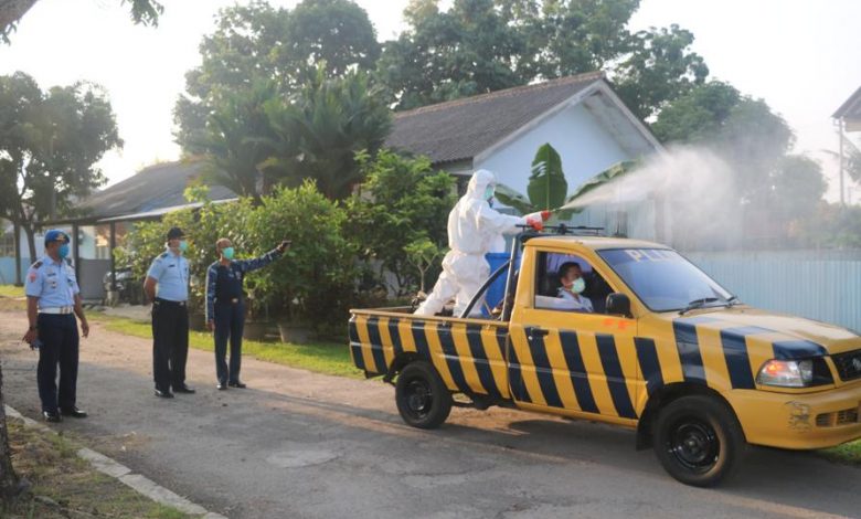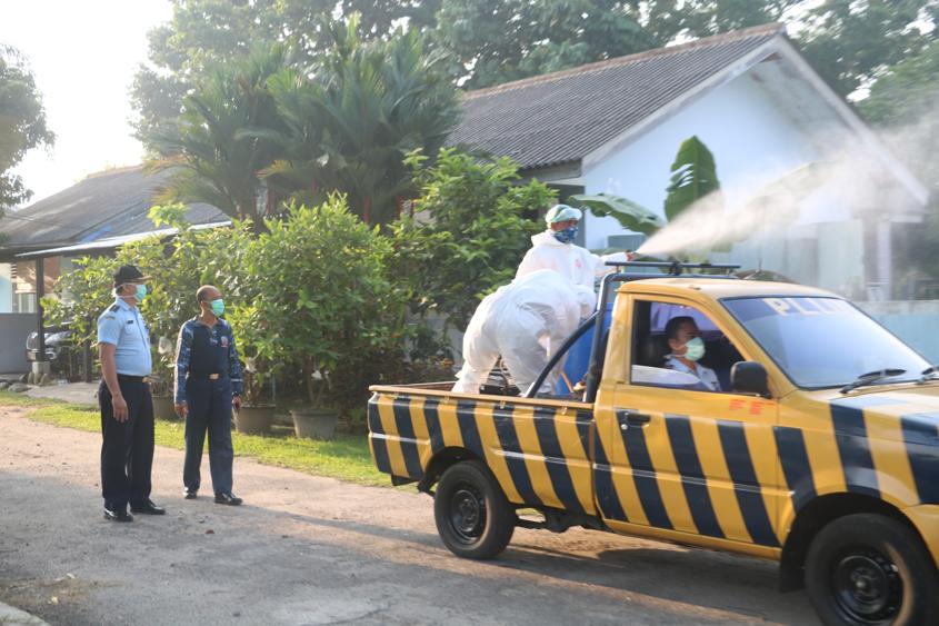 Memutus Rantai Penyebaran Covid-19, Komplek Rumdis TNI AU di Medan Disemprot Disinfektan